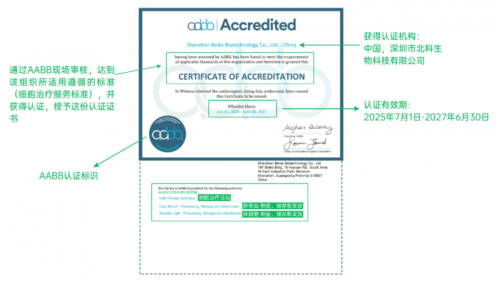 近日,深圳市北科生物科技有限公司(以下简称“北科生物”)质量管理体系成功通过AABB认证(血液与生物治疗促进协会)复审。这标志着北科生物在细胞制备、储存及治疗技术领域的质量管理体系连续14年符合国际最高标准,进一步巩固了其在细胞行业的领先地位。